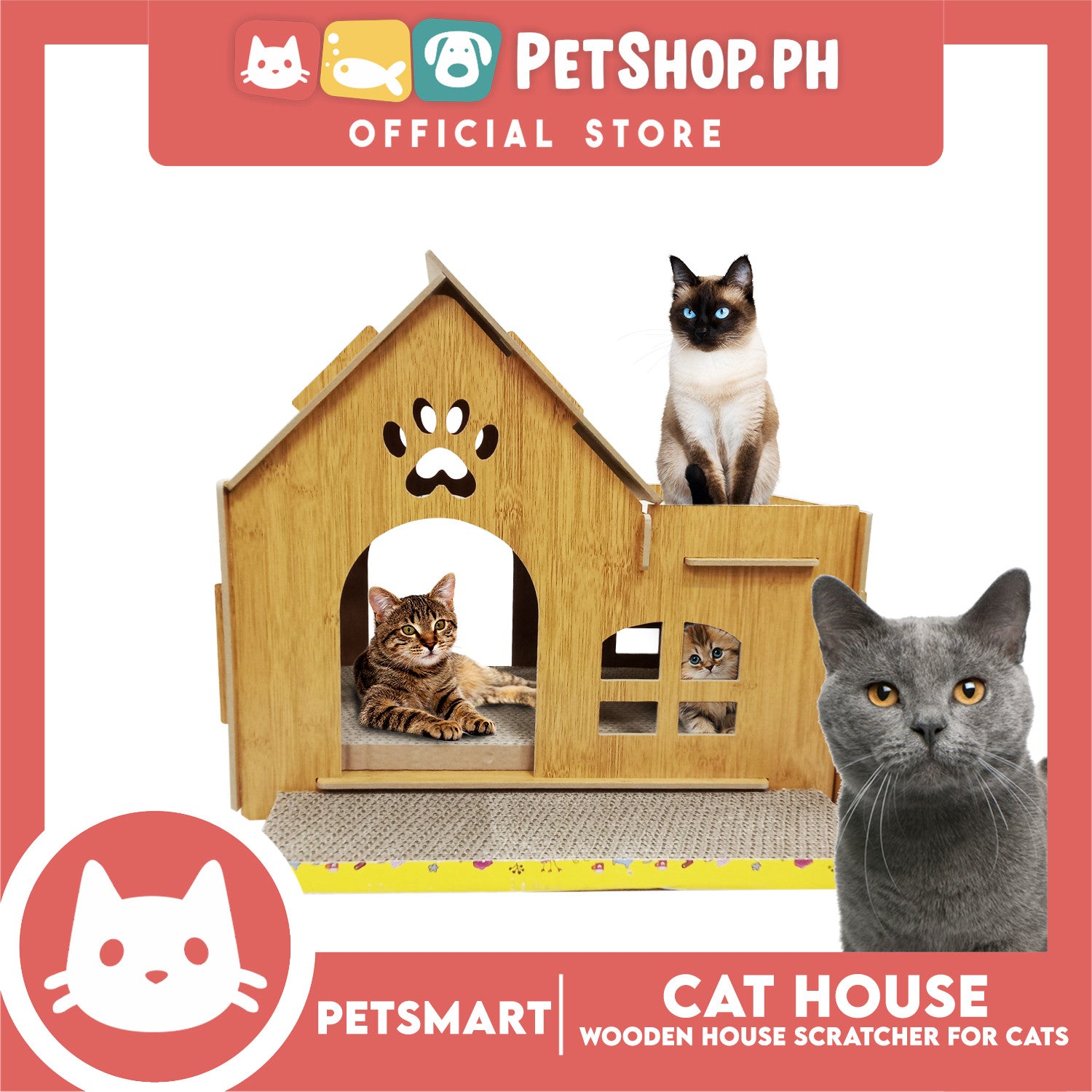 Wooden Cat House with Scratching Cardboard Cat Pad Scratcher MZB064 easy to assemble
